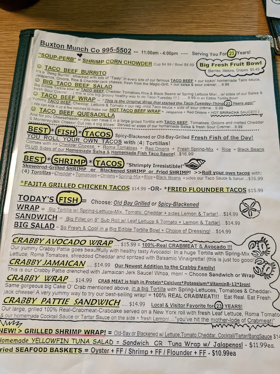 Buxton Munch Co Menu (2025 Update)